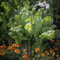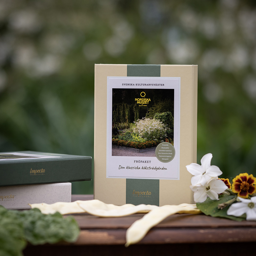 Klassinen keittiöpuutarha – Ihastuttava sekoitus, joka kimmeltää kuin kasteinen kesäaamu kultaisissa ja hopeanvalkoisissa sävyissä. Keskellä kiipeilee heleänkeltaista salkovahapapua. Korkea koristetupakka levittää tuoksuaan laajalti ympärilleen. Mangoldi ja purjo komeilevat ylpeinä keskikerroksessa, kun taas samettikukka muodostaa kukkivan maton niiden juurelle. Ja kuin suloiset huutomerkit, kauniisti muotoutuneet sidesalaatit kohoavat näkyviin.